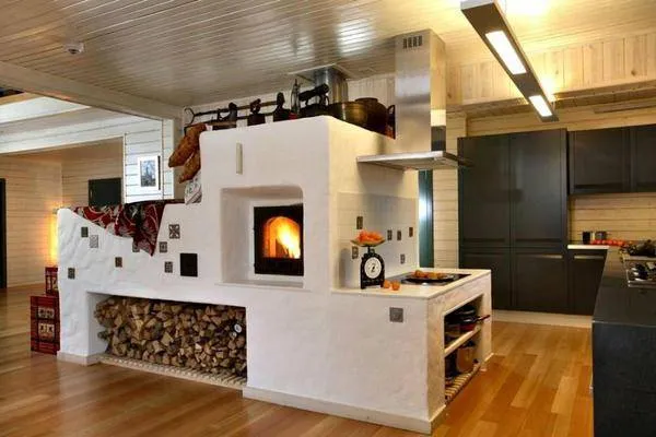 Для создания эффективного отопления в зимнее время года целесообразней устанавливать печь прямо посередине здания, топку при этом важно разворачивать в сторону кухни, тогда удастся сформировать комфортный для проживания микроклимат. Отказ от конструкции традиционной русской печи в пользу «голландки» или «шведки» помогает высвобождать жилое пространство